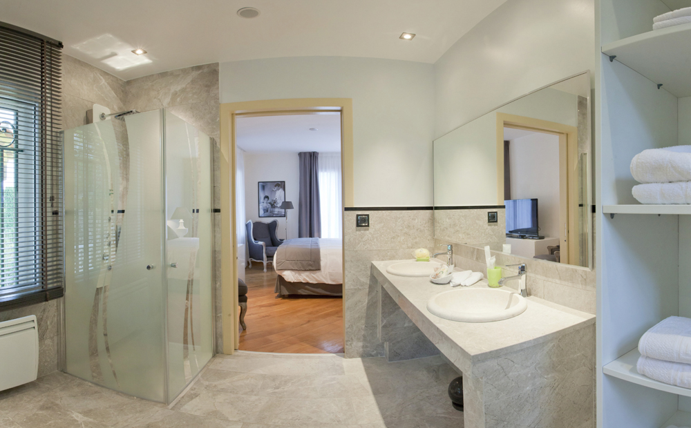 • La suite de maître posséde un dressing et une salle de bains avec 2 vasques, une douche multi jets et 1 wc.