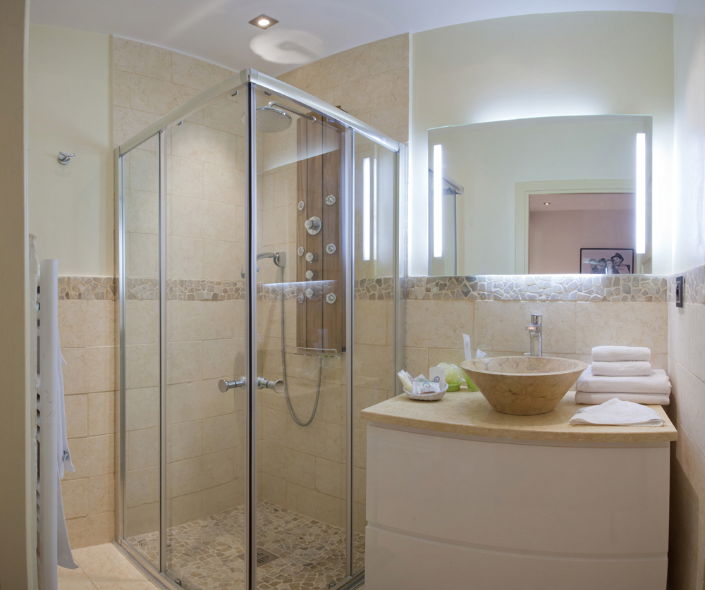 • Les trois autres chambres sont dotées chacune de salles de bains privatives avec vasque, douche massante et wc (dont 1 individuel).